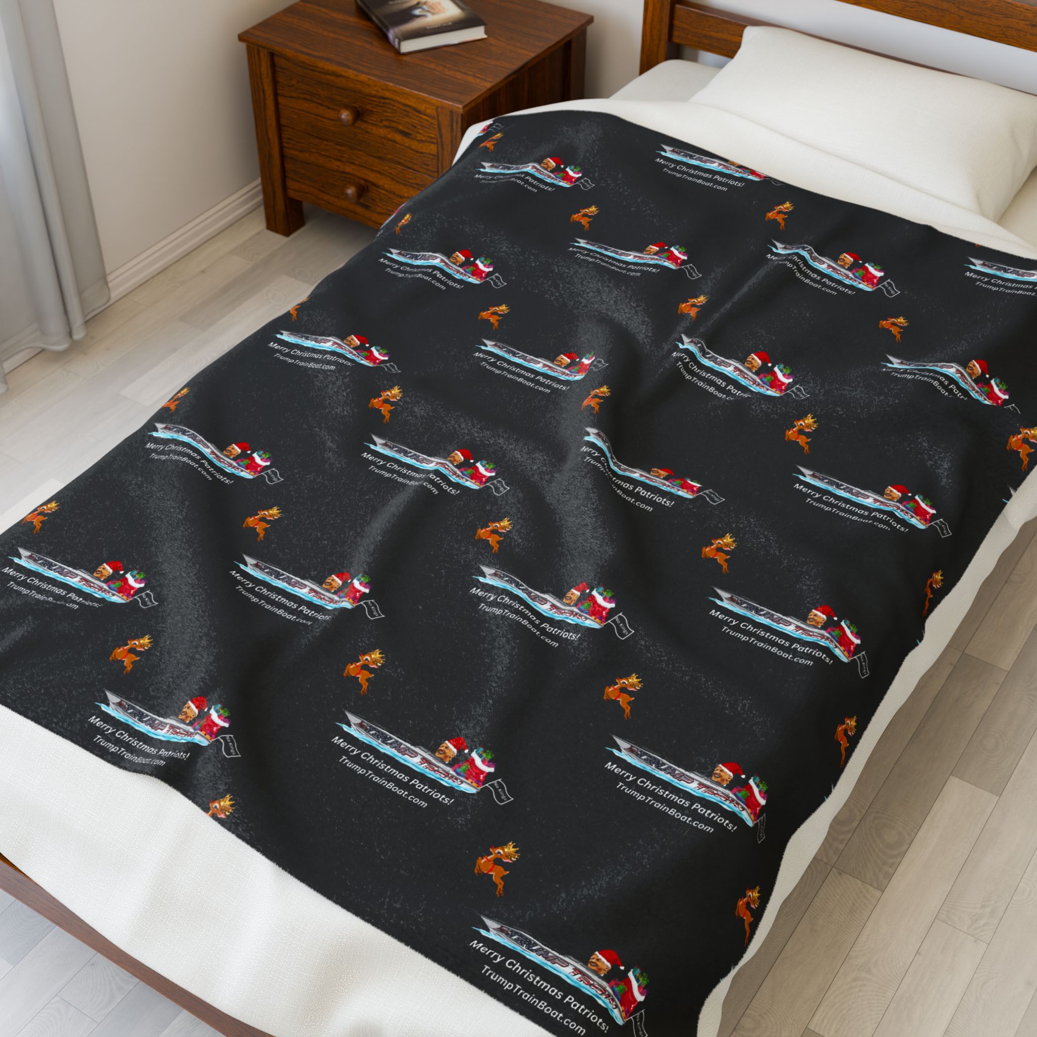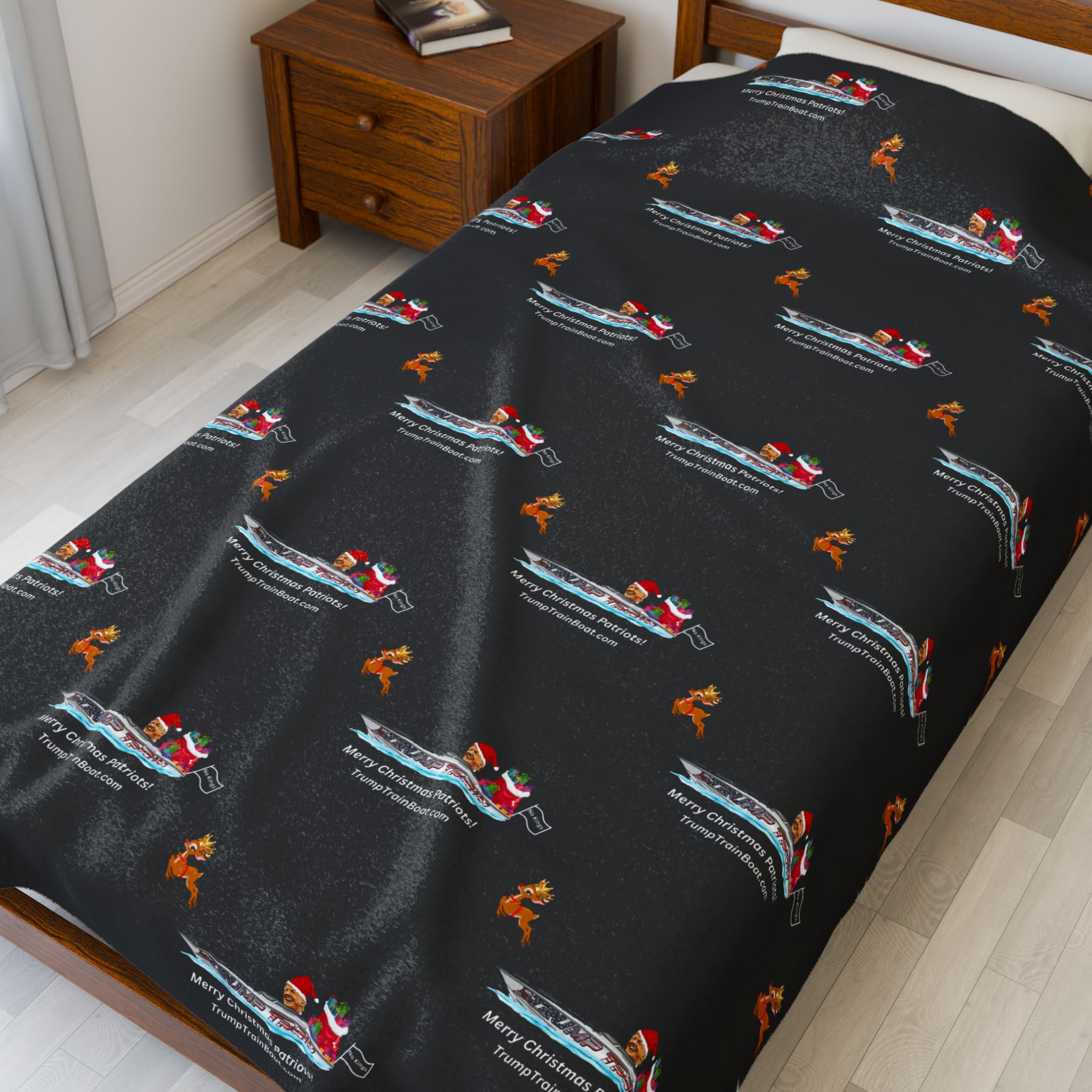 Merry Christmas Patriots! Snuggle into this velveteen plush blanket like a warm bear hug from freedom itself, soft and slightly hefty for those lazy evenings when you're dodging debates or binge-watching reruns of President Trump being sworn into office…Twice!