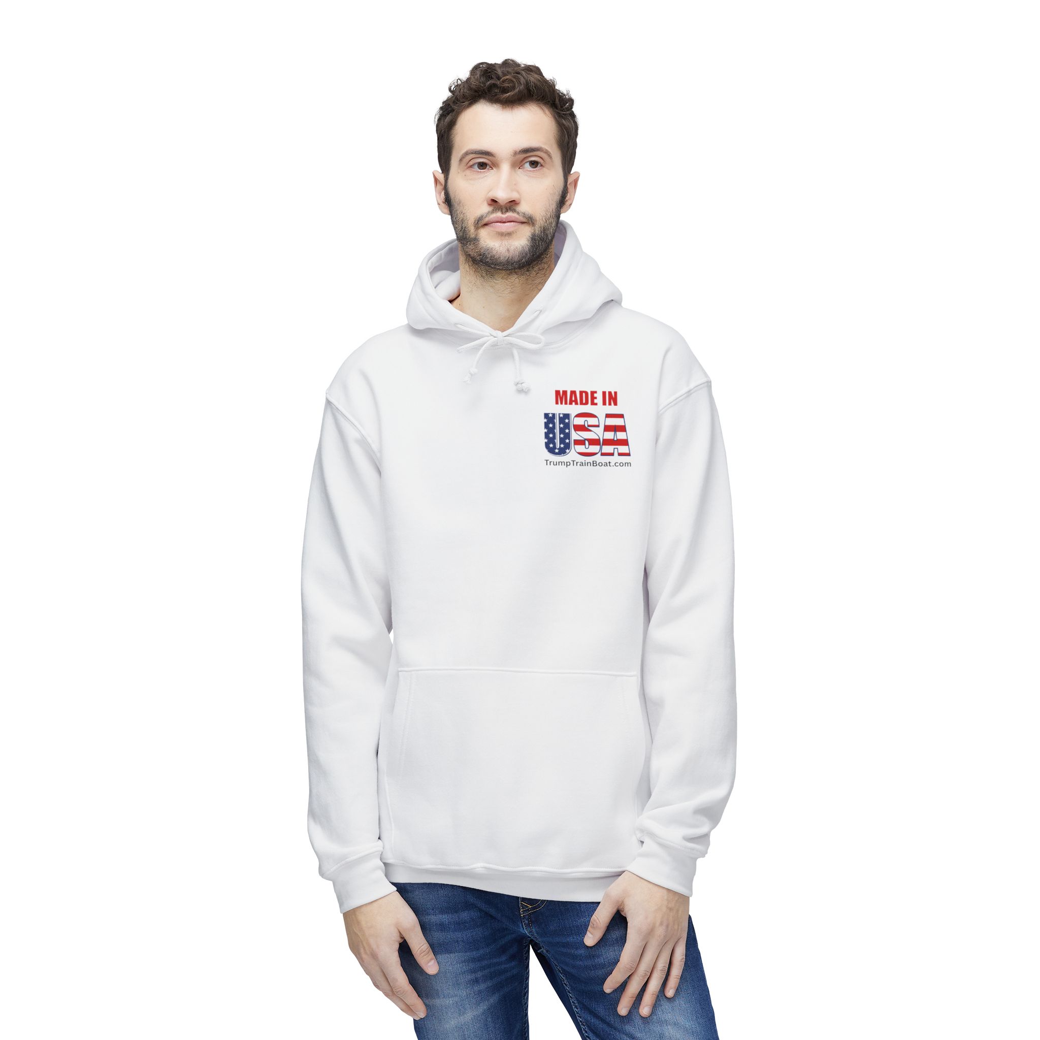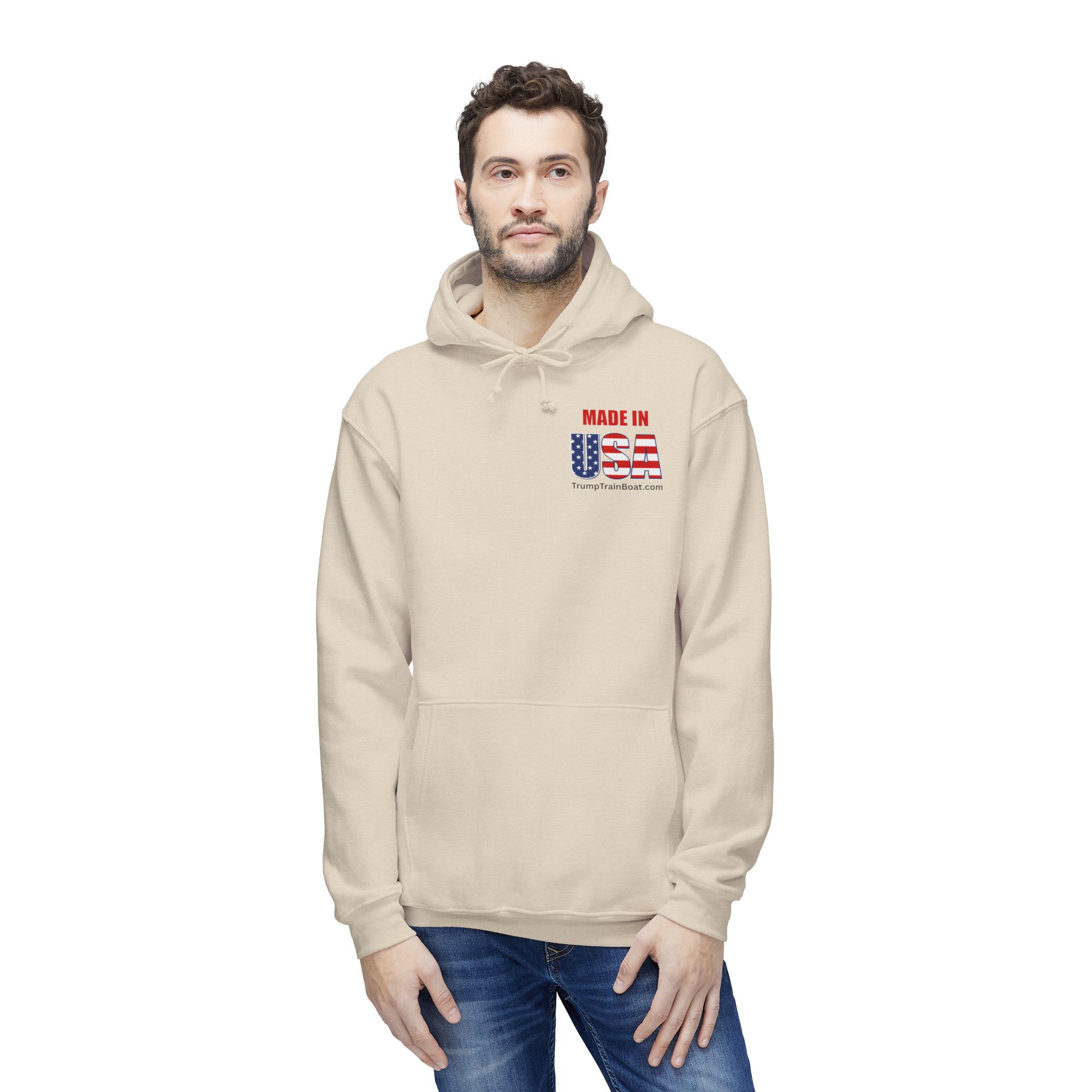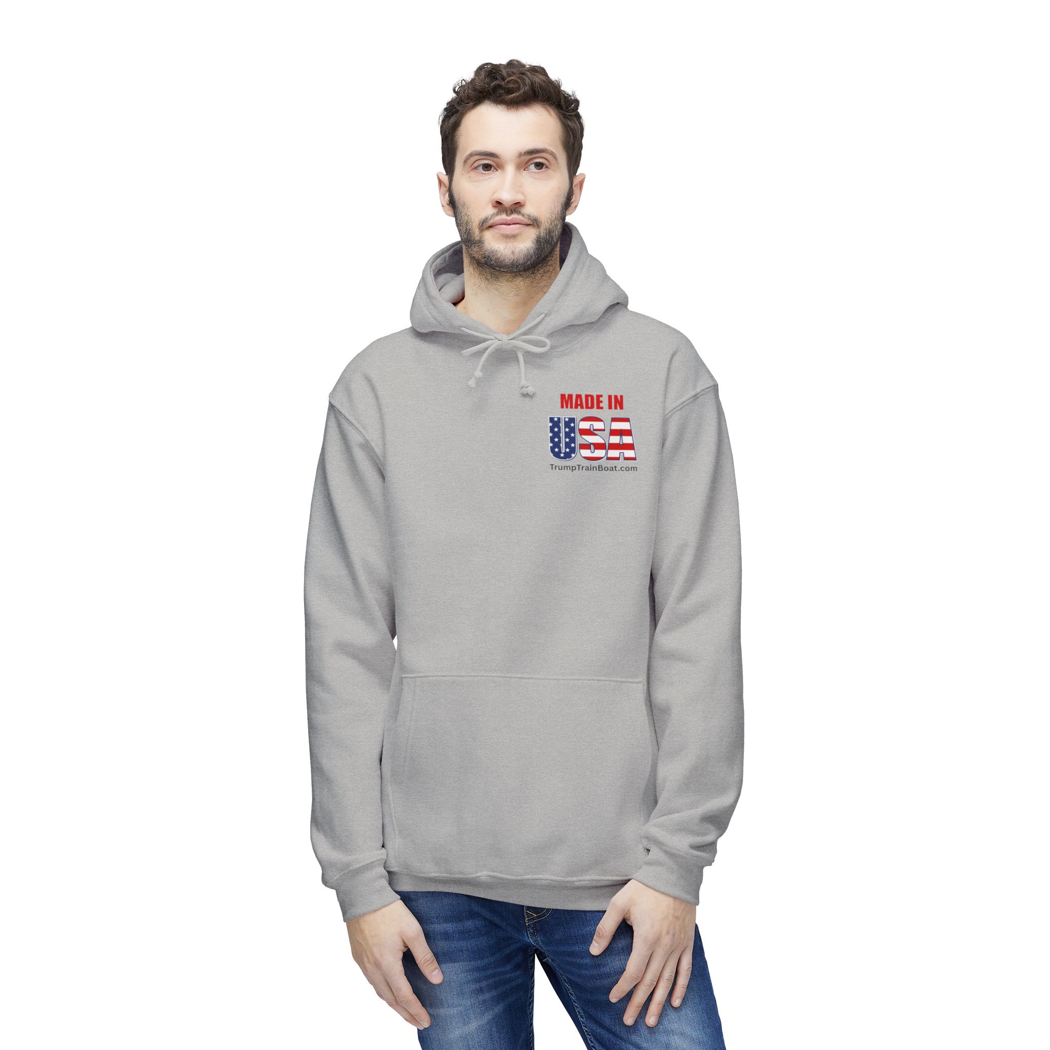 This heavyweight hooded sweatshirt brings a quiet, homegrown pride to everyday wear. The soft yet substantial 80/20 cotton-poly fabric feels warm and durable — the kind of hoodie you reach for on early morning walks, long drives across open roads, or backyard barbecues when the sun dips and the air cools. A small chest emblem and a larger, vintage-inspired back graphic with stars and a crown add a nostalgic, Americana vibe without shouting. The double-lined hood and roomy front pouch keep hands and head cozy. Made and assembled in the USA, it carries a lived-in, local-made authenticity that settles into your wardrobe and keeps giving.