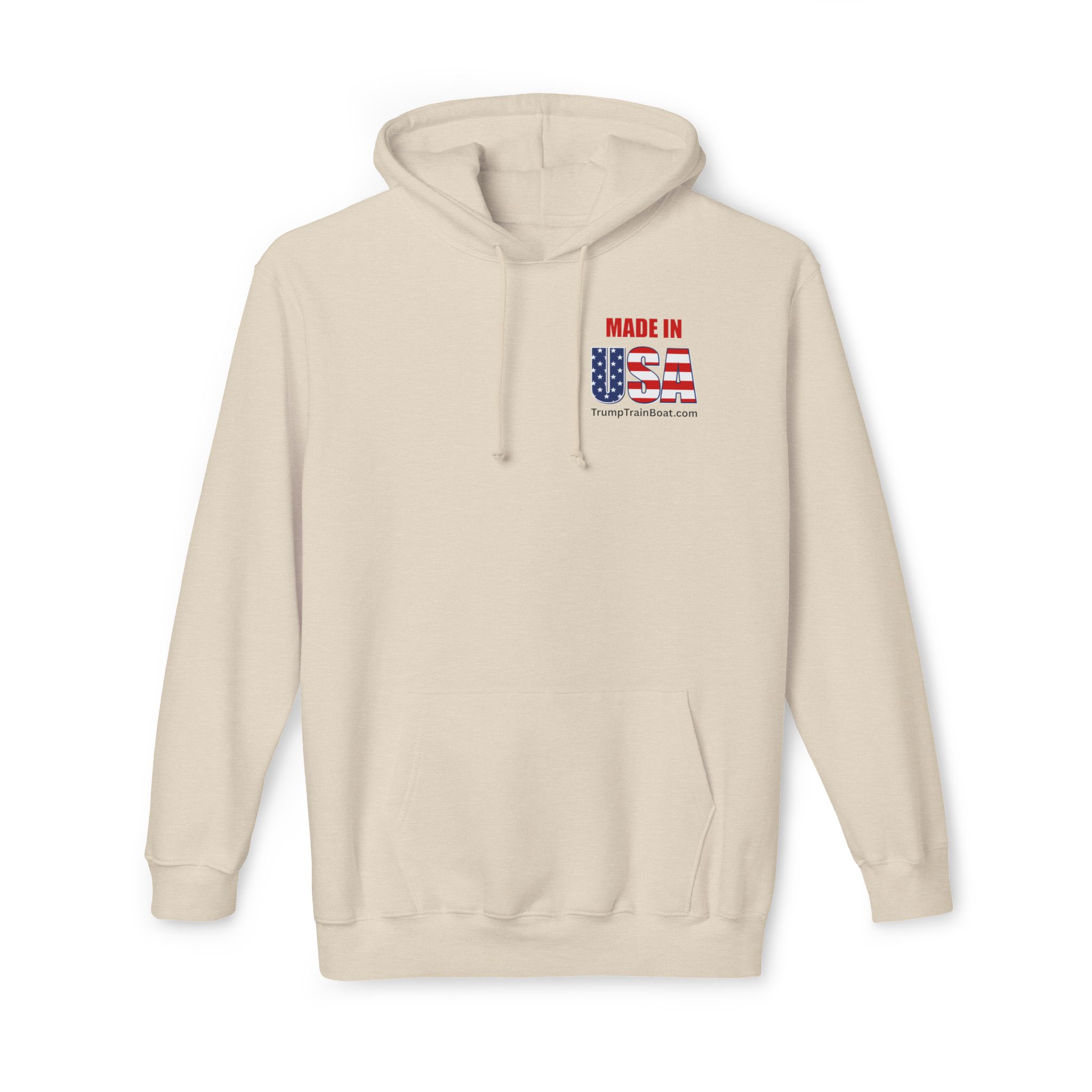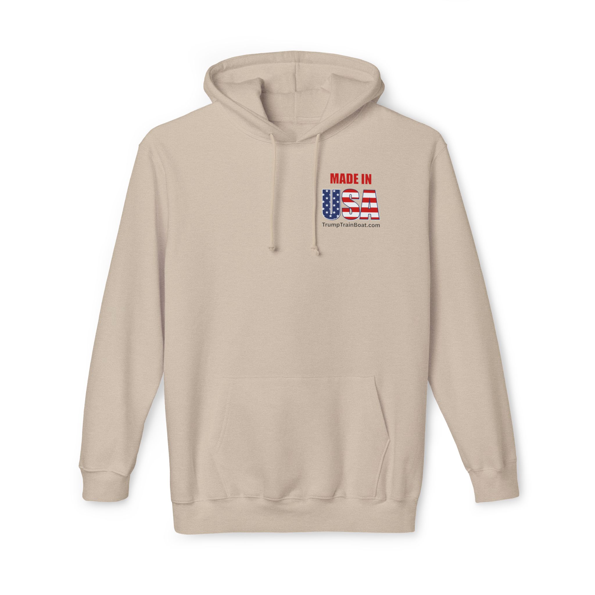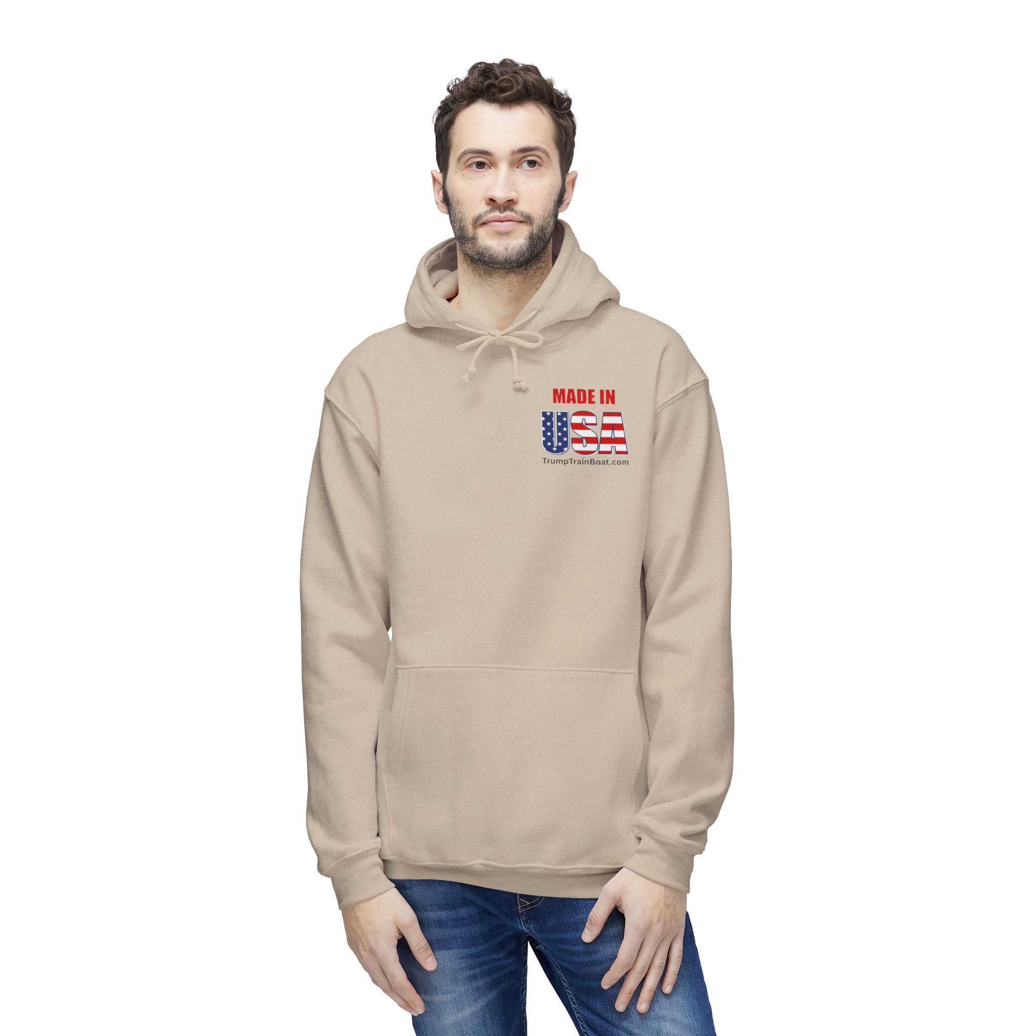 This heavyweight hooded sweatshirt brings a quiet, homegrown pride to everyday wear. The soft yet substantial 80/20 cotton-poly fabric feels warm and durable — the kind of hoodie you reach for on early morning walks, long drives across open roads, or backyard barbecues when the sun dips and the air cools. A small chest emblem and a larger, vintage-inspired back graphic with stars and a crown add a nostalgic, Americana vibe without shouting. The double-lined hood and roomy front pouch keep hands and head cozy. Made and assembled in the USA, it carries a lived-in, local-made authenticity that settles into your wardrobe and keeps giving.